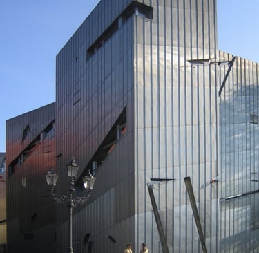 El Museo Judío de Berlín, ubicado en Berlín, es una obra impactante diseñada por Daniel Libeskind e inaugurada en 2001. Su arquitectura deconstructivista se expresa a través de una planta en zigzag y fachadas revestidas en zinc, que simbolizan la compleja historia del pueblo judío en Alemania. El edificio integra espacios vacíos, conocidos como “voids”, que evocan ausencia y memoria. Más que un museo, es una experiencia emocional y reflexiva que combina arquitectura, historia y narrativa, consolidándose como uno de los referentes culturales y arquitectónicos más significativos de Europa contemporánea.